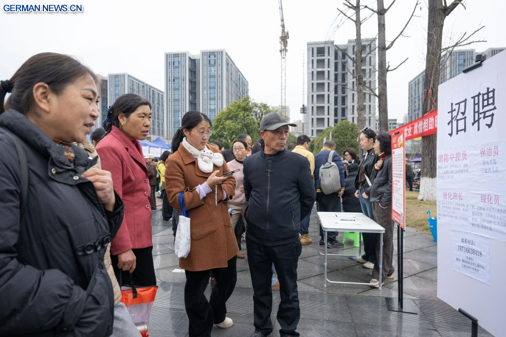 BEIJING, 27. Februar 2026 (Xinhuanet) -- Arbeitssuchende informieren sich über die Stellenangebote auf einer Jobmesse in Liangjiang New Area in Chongqing in Südwestchina, 27. Februar 2026. In jüngster Zeit wurden im ganzen Land verschiedene Arten von Jobmessen abgehalten, um Arbeitssuchenden Stellenangebote zu vermitteln. (Quelle: Xinhua/Chen Cheng)