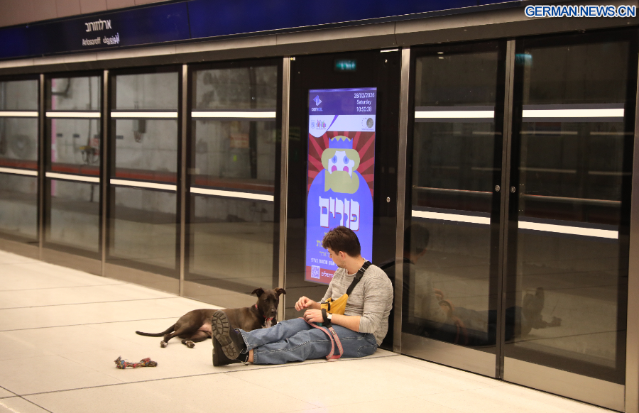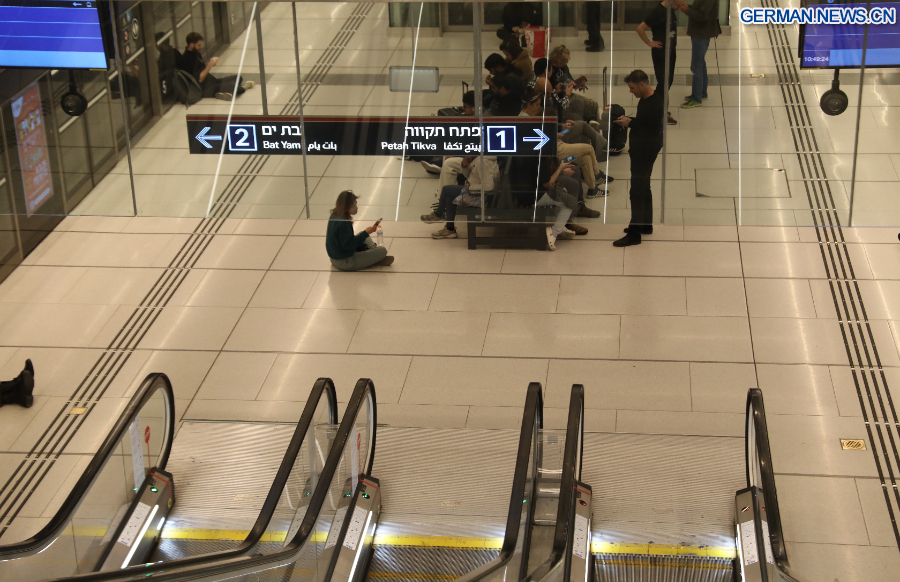 TEL AVIV, 1. März 2026 (Xinhua) -- Menschen suchen Schutz in einer U-Bahn-Station in Tel Aviv in Israel, 28. Februar 2026. Das Heimatschutzkommando der israelischen Streitkräfte hat Zivilschutzanweisungen erteilt, als in mehreren Gebieten des Landes Luftschutzsirenen ertönten, und Einwohner aufgefordert, Schutz zu suchen.