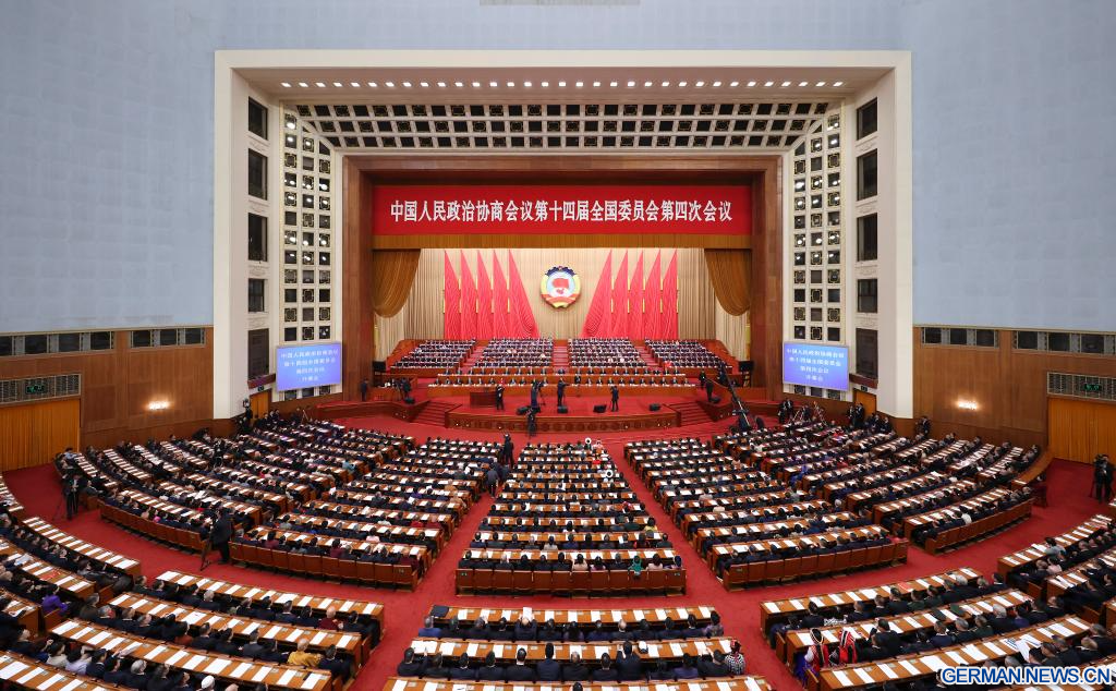BEIJING, 4. März 2026 (Xinhuanet) -- Die Eröffnungssitzung der vierten Tagung des 14. Landeskomitees der Politischen Konsultativkonferenz des Chinesischen Volkes (PKKCV) findet in der Großen Halle des Volkes in Chinas Hauptstadt Beijing statt, 4. März 2026. (Quelle: Xinhua/Zhang Ling)