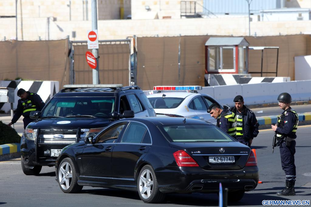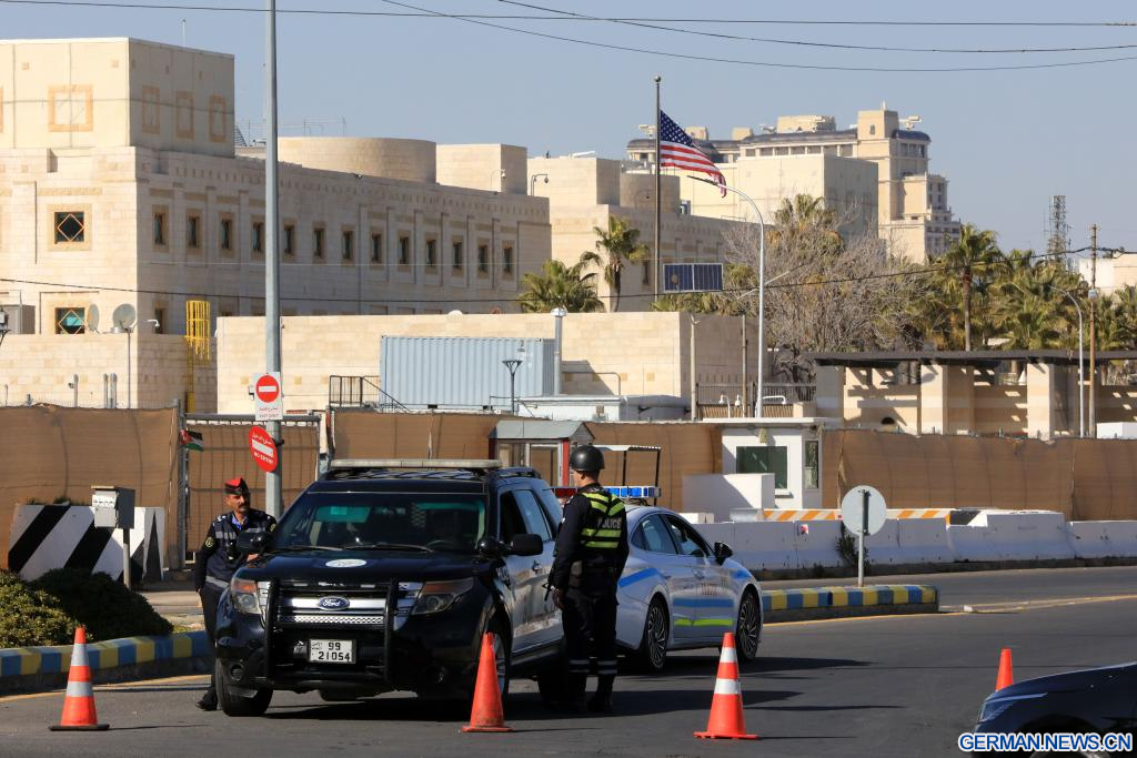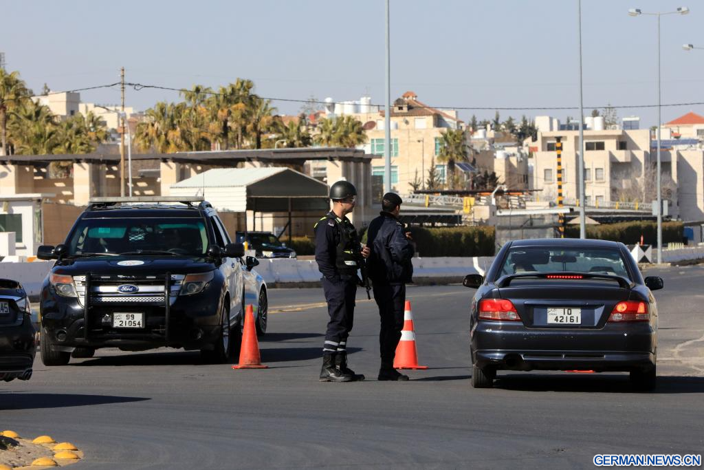 AMMAN, 3. März 2026 (Xinhuanet) -- Die jordanischen Polizisten sperren das Gebiet und die Straßen rund um die US-Botschaft in Amman, Jordanien, 3. März 2026. Alle Mitarbeiter der US-Botschaft in Amman haben aufgrund einer Sicherheitsbedrohung vorübergehend das Botschaftsgelände verlassen, teilte die Botschaft am Montag in einer Erklärung mit. (Foto von Mohammad Abu Ghosh/Xinhua)