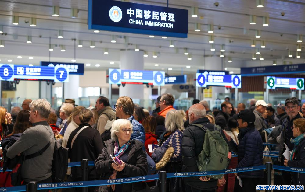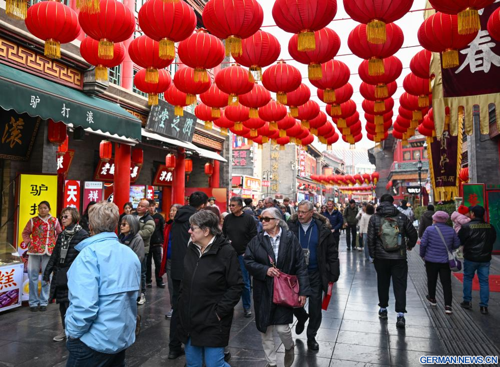 Die fast 600 Passagiere an Bord der MS Regatta, die aus über 20 Ländern und Regionen, darunter den Vereinigten Staaten, Kanada und Australien, stammten, begaben sich auf eine zweitägige Reise, um den kulturellen Charme und die historische Pracht Tianjins zu erleben. (Quelle: Xinhua/Sun Fanyue)