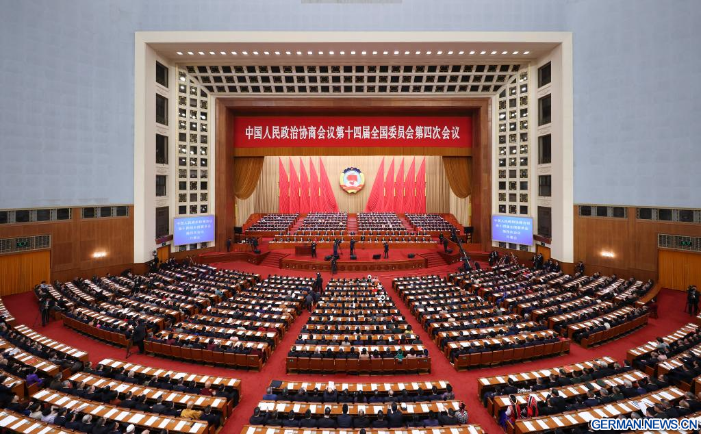 Der chinesische Staatspräsident Xi Jinping nahm zusammen mit anderen Führungspersönlichkeiten an der Eröffnungssitzung der vierten Tagung des 14. Landeskomitees der PKKCV in der Großen Halle des Volkes teil.
