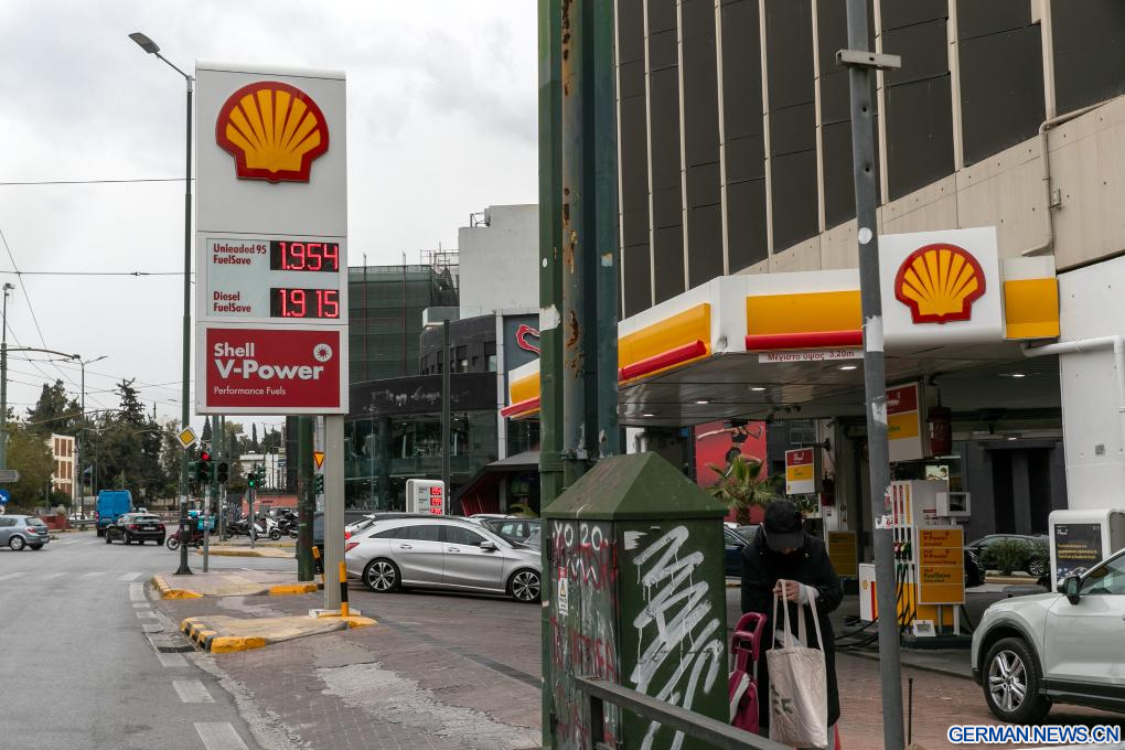 ATHEN, 17. März 2026 (Xinhuanet) -- Das am 17. März 2026 aufgenommene Foto zeigt die Benzinpreise, die an einer Tankstelle in Athen, Griechenland, angezeigt werden. Seit Beginn der militärischen Operationen der USA und des Israels gegen den Iran sind die Benzinpreise in Griechenland gestiegen. (Quelle: Xinhua/Marios Lolos)