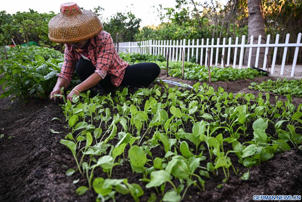 SANSHA, 23. März 2026 (Xinhuanet) -- Eine Landwirtin pflanzt Setzlinge auf der Insel Zhaoshu in Sansha in der südchinesischen Provinz Hainan, 19. März 2026.