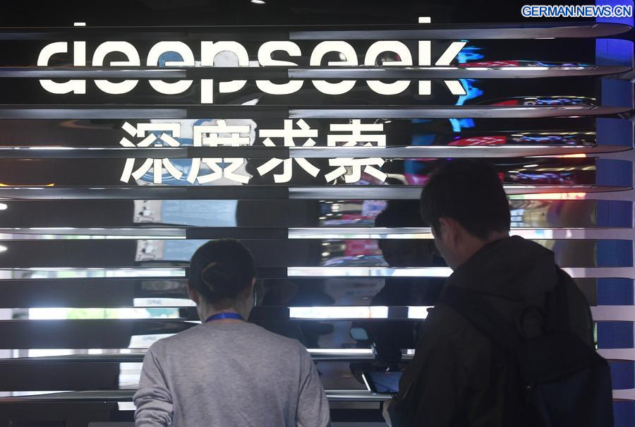 Besucher informieren sich über das KI-Modell DeepSeek auf einer Messe zum Thema KI-Technologien in Hangzhou in der Provinz Zhejiang in Ostchina, 4. Mai 2025. (Foto von Long Wei/Xinhua)