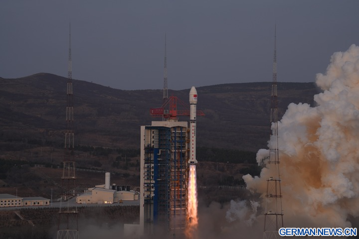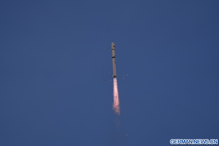 Die Rakete startete um 6:51 Uhr (Ortszeit Beijing) und brachte die beiden Satelliten „Siwei Gaojing-2 05“ und „Siwei Gaojing-2 06“ in ihre vorgesehene Umlaufbahn. (Foto von Wang Yapeng/Xinhua)