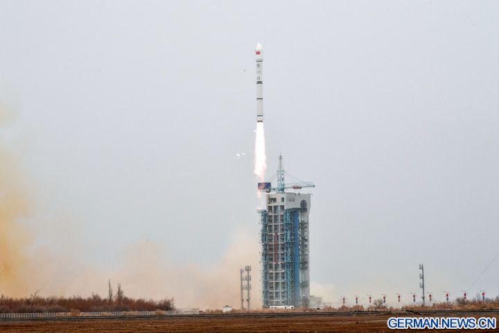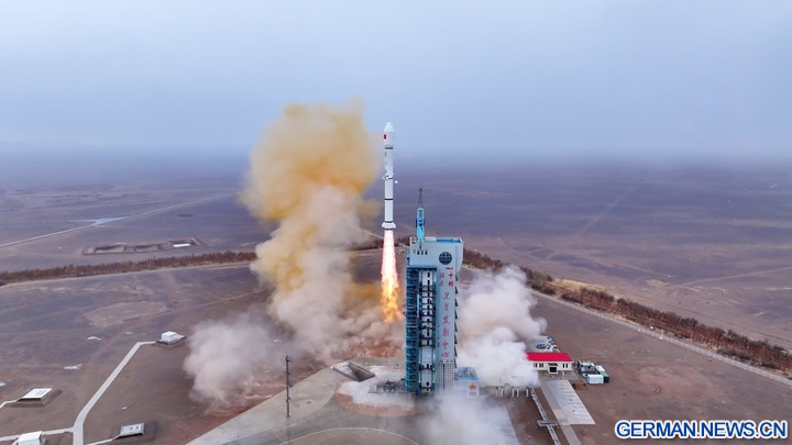 JIUQUAN, 27. März 2026 (Xinhua) -- Eine Trägerrakete vom Typ „Langer Marsch-2C“ startet mit der an der Rakete angebrachten Oberstufe „Yuanzheng-1S“ (Expedition-1S) und dem Satelliten „Shiyan-33“ vom Weltraumbahnhof Jiuquan Satellite Launch Center im Nordwesten Chinas, 27. März 2026. Der Satellit wurde um 12:11 Uhr (Ortszeit Beijing) gestartet und hat erfolgreich seine vorgesehene Umlaufbahn erreicht. (Foto von Wang Jiangbo/Xinhua)