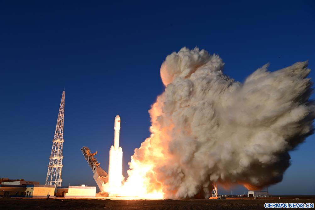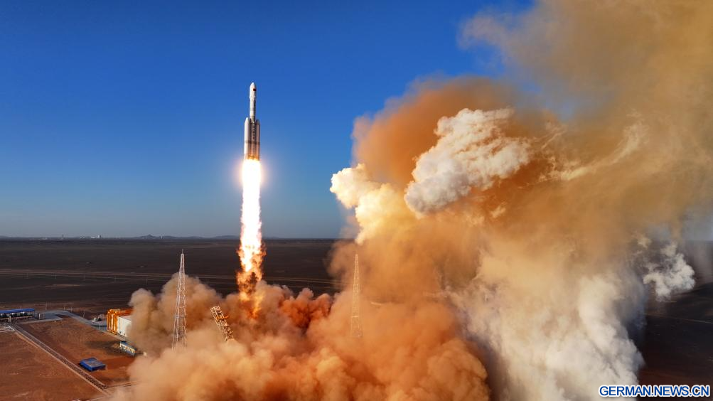 JIUQUAN, 30. März 2026 (Xinhuanet) -- Eine Trägerrakete vom Typ „Lijian-2 Y1“ mit drei Satelliten an Bord startet von der Pilotzone Dongfeng für kommerzielle Raumfahrtinnovationen im Nordwesten Chinas, 30. März 2026. Die Rakete startete um 19:00 Uhr Ortszeit Beijing von einer Pilotzone für kommerzielle Raumfahrtinnovationen im Nordwesten Chinas und brachte die Satelliten erfolgreich in die geplante Umlaufbahn. (Foto von Wang Jiangbo/Xinhua)