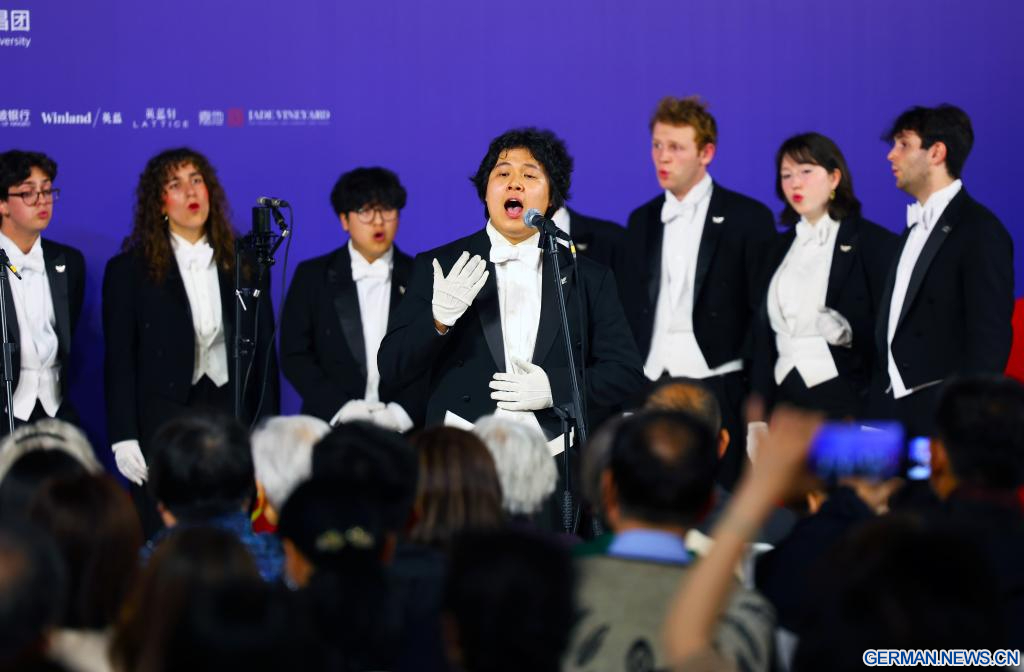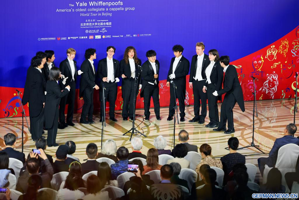 BEIJING, 31. März 2026 (Xinhuanet) -- Der A-cappella-Chor „Whiffenpoofs“ der Yale University tritt in der chinesischen Hauptstadt Beijing auf, 31. März 2026. (Quelle: Xinhua/Lu Ye)