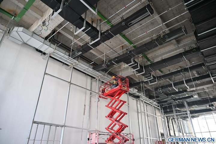 Ein Mitarbeiter der China Construction Third Engineering Bureau Group Co., Ltd. arbeitet auf der Baustelle des Hauptsitzes der China Mineral Resources Group Ltd. in der Xiong'an New Area in der nordchinesischen Provinz Hebei, 25. März 2026. (Xinhua/Mu Yu)