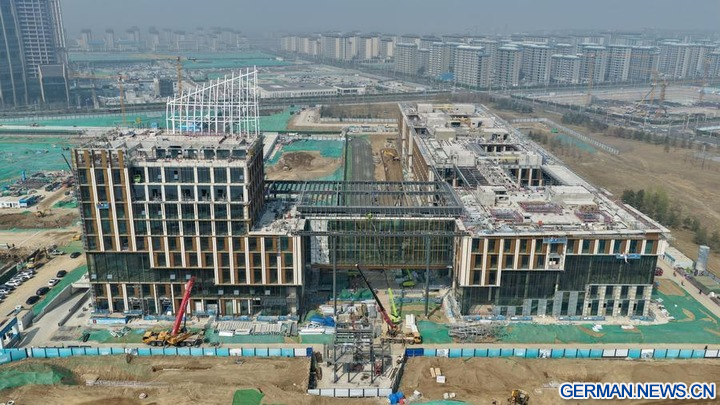 Das Foto zeigt die Baustelle des Hauptsitzes der China Mineral Resources Group Ltd. in der Xiong'an New Area in der nordchinesischen Provinz Hebei, 25. März 2026. (Xinhua/Mu Yu)