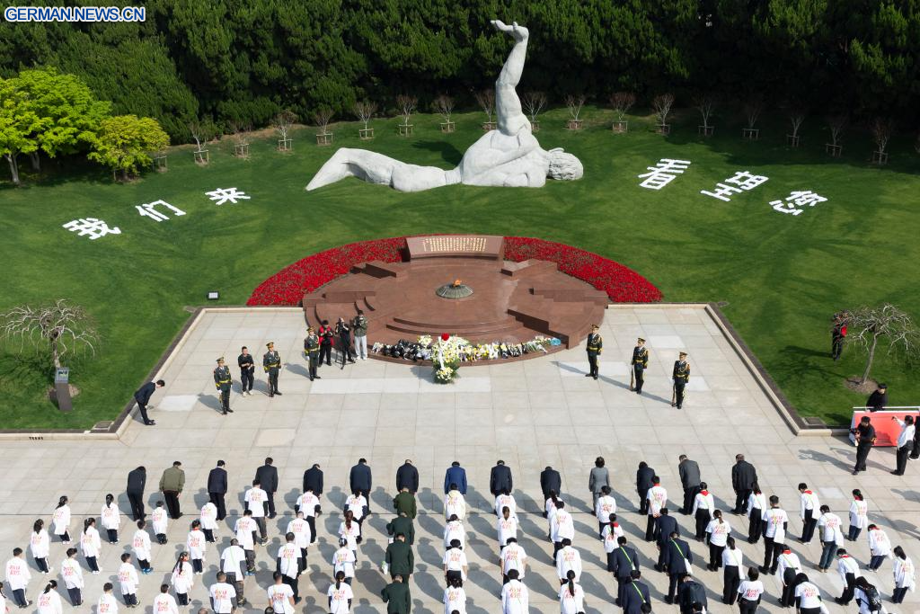 BEIJING, 5. April 2026 (Xinhuanet) -- Menschen gedenken der Märtyrer auf dem Longhua-Revolutionsmärtyrerfriedhof im ostchinesischen Shanghai, 5. April 2026. Menschen im ganzen Land nahmen an diesem Sonntag an verschiedenen Aktivitäten teil, um während des Qingming-Festes, auch bekannt als Tag des Grabfegens, der Märtyrer zu gedenken. (Quelle: Xinhua/Wang Xiang)