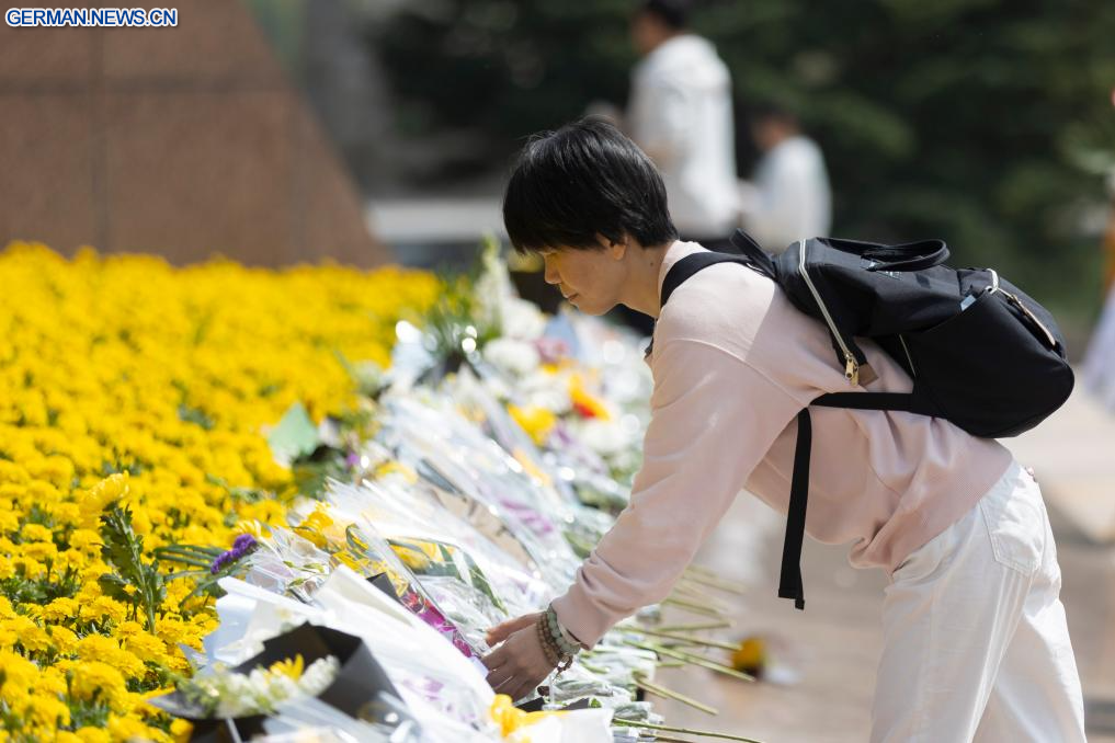 BEIJING, 5. April 2026 (Xinhuanet) -- Eine Frau gedenkt der Märtyrer auf dem Longhua-Revolutionsmärtyrerfriedhof im ostchinesischen Shanghai, 5. April 2026. Menschen im ganzen Land nahmen an diesem Sonntag an verschiedenen Aktivitäten teil, um während des Qingming-Festes, auch bekannt als Tag des Grabfegens, der Märtyrer zu gedenken. (Quelle: Xinhua/Wang Xiang)