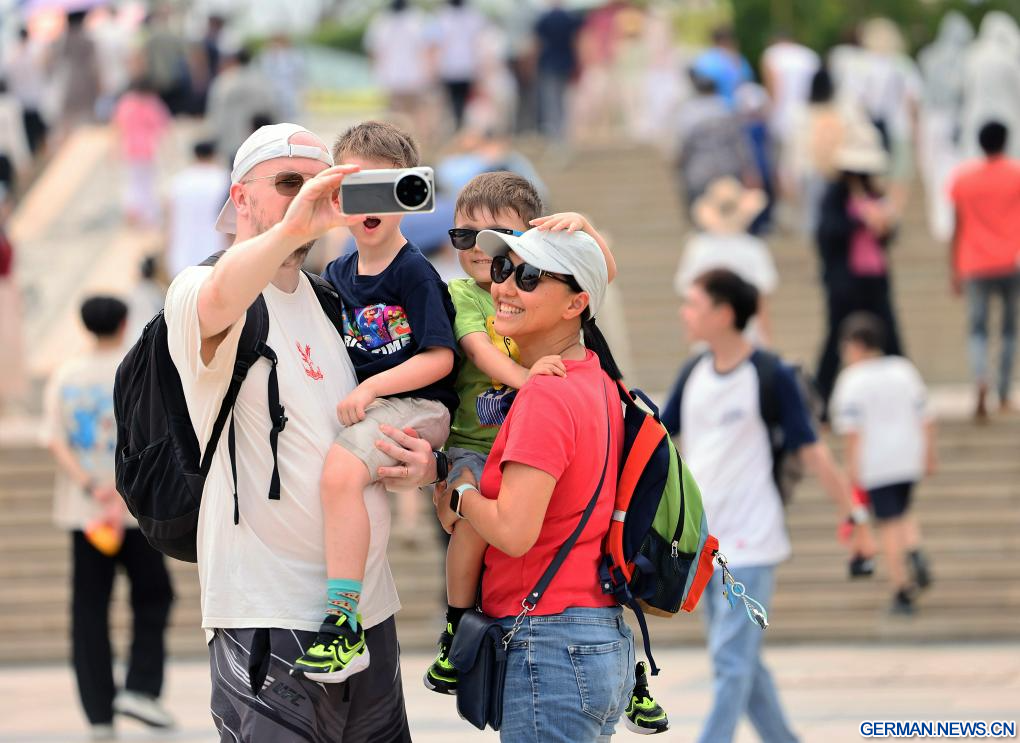 BEIJING, 7. April 2026 (Xinhuanet) -- Touristen machen ein Selfie während ihres Besuchs in der Nanshan Cultural Tourism Zone in der Stadt Sanya in der südchinesischen Provinz Hainan, 6. April 2026. (Foto von Chen Wenwu/Xinhua)