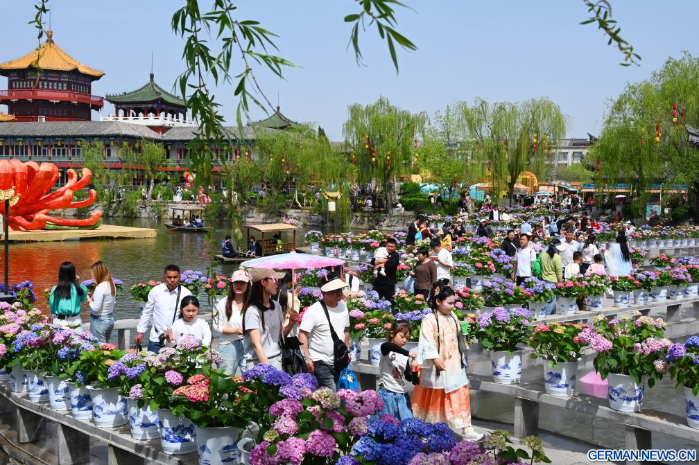 BEIJING, 7. April 2026 (Xinhuanet) -- Touristen besuchen den Kulturgarten Hanyuan-Stelenwälder in der Stadt Kaifeng in der zentralchinesischen Provinz Henan, 5. April 2026. (Foto von Li Junsheng/Xinhua)