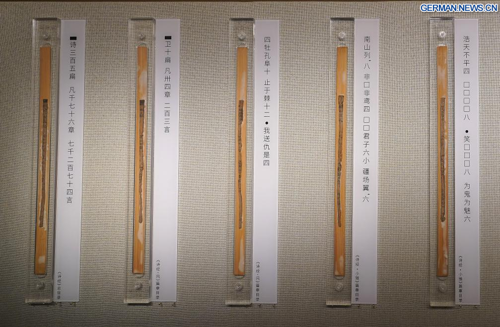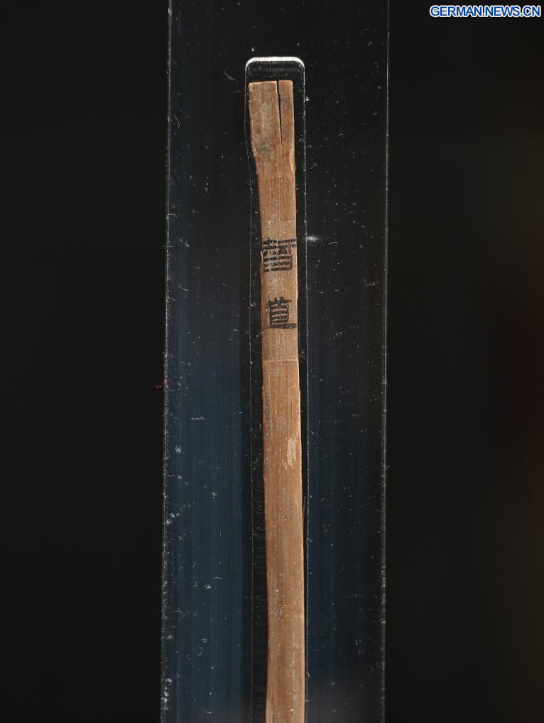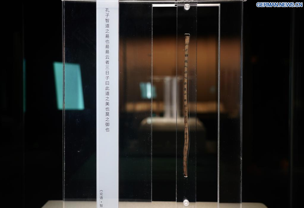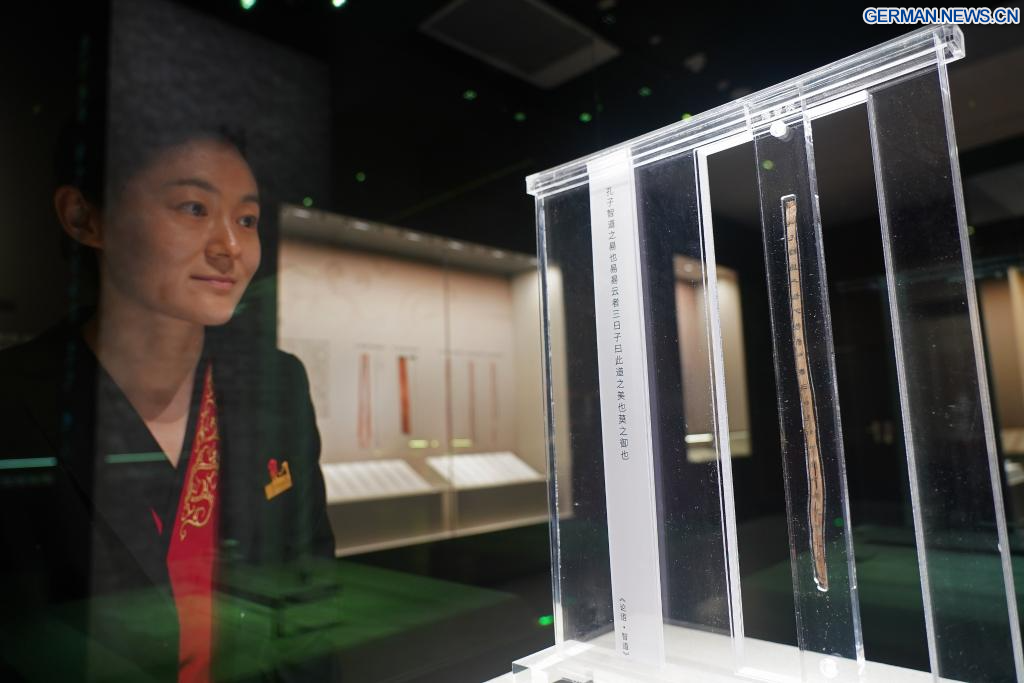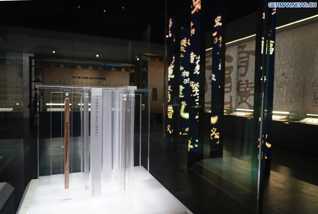 NANCHANG, 14. April 2026 (Xinhuanet) -- Dieses am 13. April 2026 aufgenommene Foto zeigt eine Szene innerhalb des Austragungsortes von „Einer Ausstellung über Kultur der Bambusstreifen der Han-Dynastie aus dem Marquisat Haihun“ im Nanchang-Museum für Relikte des Marquisats Haihun der Han-Dynastie in Nanchang in der ostchinesischen Provinz Jiangxi. Die Ausstellung wurde hier früher in dieser Woche eröffnet, wobei über 100 neu restaurierte Bambusstreifen zum ersten Mal seit ihrer Ausgrabung öffentlich ausgestellt werden.