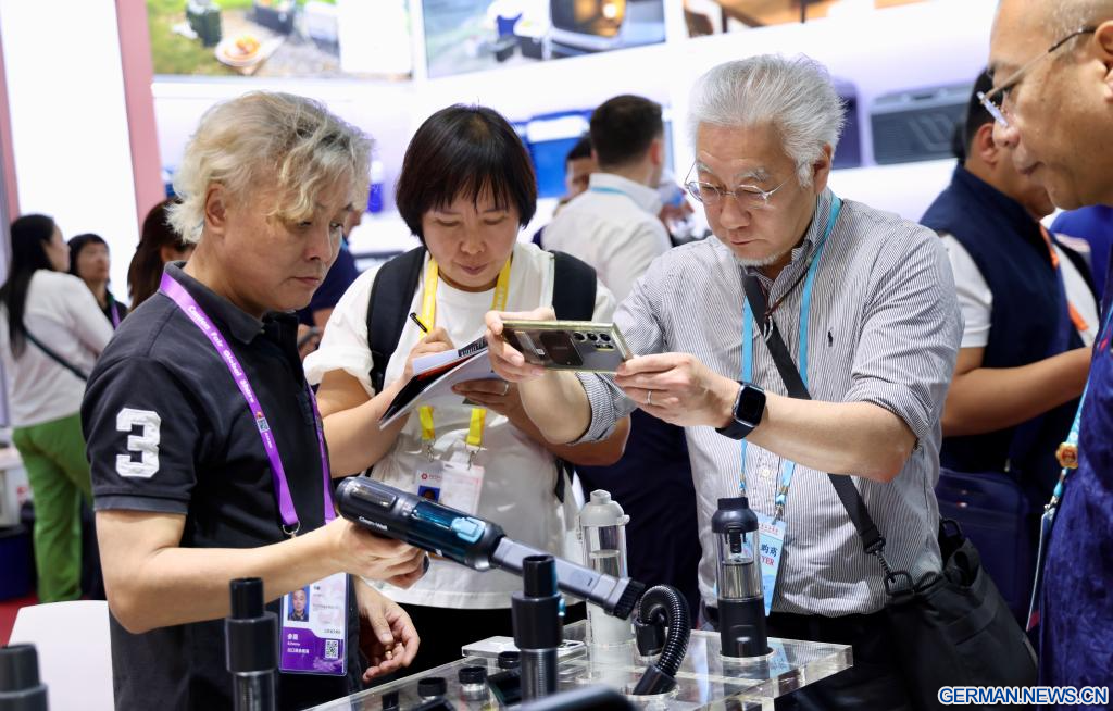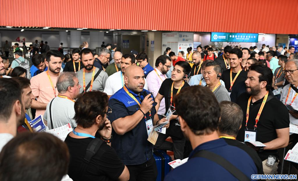 GUANGZHOU, 15. April 2026 (Xinhuanet) -- Käufer aus Brasilien besuchen die 139. Chinesische Import- und Exportmesse in Guangzhou in der südchinesischen Provinz Guangdong, 15. April 2026. Die 139. Chinesische Import- und Exportmesse, auch bekannt als die Kanton-Messe, wurde hier am Mittwoch eröffnet und zog eine Rekordzahl von mehr als 32.000 teilnehmenden Unternehmen an.
