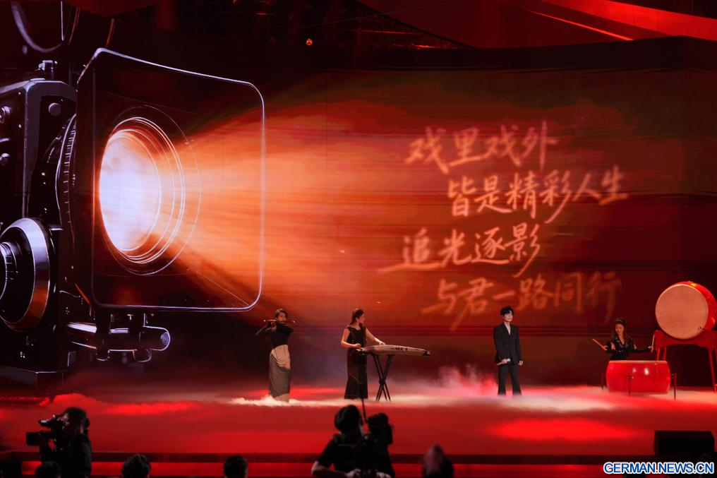BEIJING, 16. April 2026 (Xinhuanet) -- Das am 16. April aufgenommene Foto zeigt eine Szene bei der Eröffnungszeremonie des 16. Internationalen Filmfestivals von Beijing (BJIFF) in der chinesischen Hauptstadt Beijing. Das 16. BJIFF wurde am Donnerstag hier im Yanqi Lake International Convention & Exhibition Center eröffnet. (Quelle: Xinhua/Xie Han)