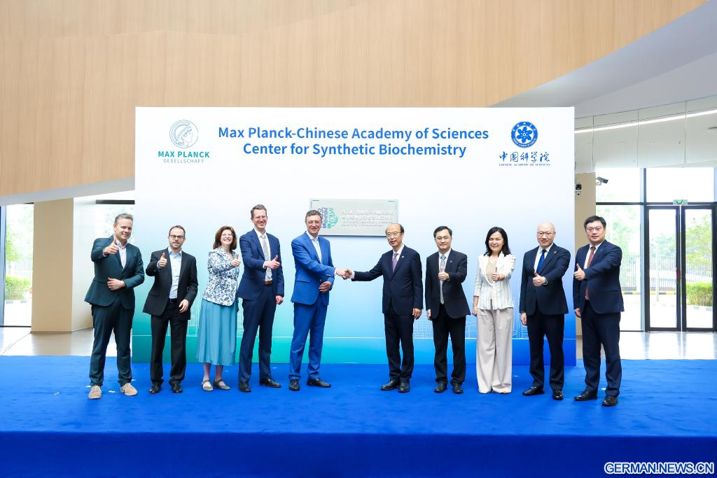 SHENZHEN, 18. April 2026 (Xinhuanet) -- Das Foto vom 18. April 2026 zeigt die Einweihungszeremonie des Zentrums für synthetische Biochemie der Max-Planck-Gesellschaft und der Chinesischen Akademie der Wissenschaften in Shenzhen in der südchinesischen Provinz Guangdong. Das Zentrum für synthetische Biochemie der Max-Planck-Gesellschaft und der Chinesischen Akademie der Wissenschaften wurde am Samstag in Shenzhen in Südchina offiziell eingeweiht. Damit wurde die erste gemeinsame Forschungsinitiative der Max-Planck-Gesellschaft (MPG) aus Deutschland und der Chinesischen Akademie der Wissenschaften (CAS) ins Leben gerufen, die sich speziell dem Bereich der synthetischen Biologie widmet. (Quelle: Shenzhen-Institute für fortgeschrittene Technologien/Handout via Xinhua)